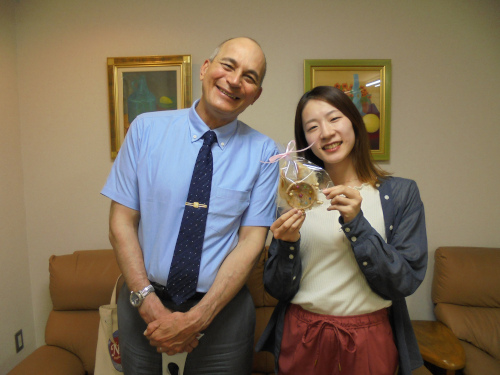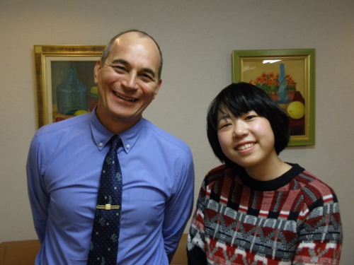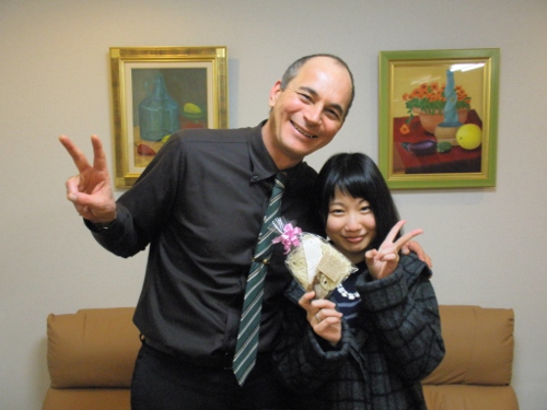 〜 就職で夢を叶えました!〜 この春大学を卒業し盛岡を離れるSさんにインタビューをしてみました♪ Q: 英会話を習おうと思ったきっかけは? 英語が苦手だったので得意になりたいと思ったからです。 Q: ニカのレッスンについて教えてください。 とても楽しい時間でした!先生がおもしろかった(笑)。イベントもあって、素晴らしいです。 Q: 今の目標は何ですか? もっと英語を使えるようになりたい!! Q: その他なんなりと・・ Dean先生、Thank you!! 更新日 2013年3月 |